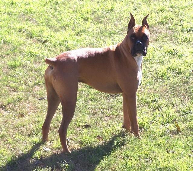 The boxer dog breed is considered to be highly intelligent, and does great with obedience training. This breed however needs a firm handler at times to reinforce who is in charge, otherwise he could become quite a handful.